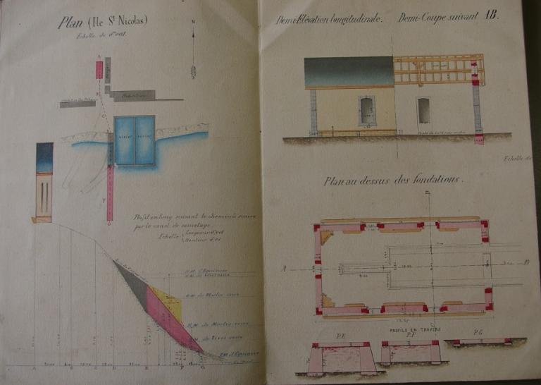 L'abri du canot de sauvetage de l'île St Nicolas est construit en 1881 par la Société Centrale de sauvetage en mer sous la surveillance des Ponts et Chaussées. Le terrain fut cédé par Halna du Frétay, propriétaire du vivier. L'édifice est réalisé par un entrepreneur de Concarneau. En 1913, les rails sont installés. Après la deuxième guerre mondiale en 1919, d'importants travaux sont effectués : réfection de la chaussée de la cale, repose des rails. En 1922, le vieux treuil est remplacé par un treuil neuf fourni par les Forges Vulcain. En 1933, la toiture est réparée et la porte remplacée. En 1939, les rails sont remplacés dans la partie basse.