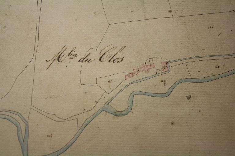 Le moulin à papier du Clos est concédé par les Bihan de Kerallo, tout comme le moulin à papier du Drézec. Un aveu le déclare existant en 1673 et le premier papetier signalé est Guillaume Millet qui y décède en 1677.