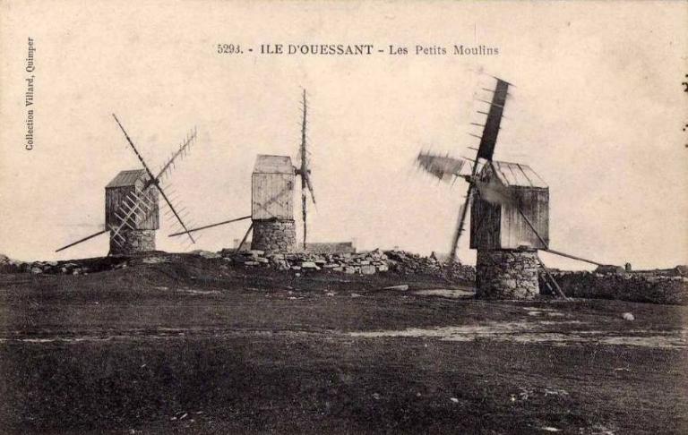 Lors de l'enquête d'inventaire réalisée en 2014, il a été repéré de nombreuses meules de moulin. Abandonnées ou réutilisées en guise de table de jardin, elles sont les traces d'une architecture technique passée : si aux 17e, 18e et 19e siècle Ouessant comptait de 2 à 9 grands moulins, au cours du 19e et jusqu'au début du 20e, une multitude de petits moulins émaillaient le territoire ouessantin.