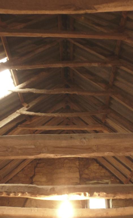 La grange est en moellons et sa porte charretière en arc surbaissé est ouverte sur la façade antérieure. À l’intérieur se trouve encore une cheminée à côté de laquelle trônait le « bib » (la cuve à laver le linge) aujourd’hui disparu. Sur son pignon est se trouvent une série de galets saillants disposés, à première vue, de façon aléatoire. Selon les témoignages recueillis sur place, cette disposition permettait, entre autre, de maintenir pliées de longues branches de saule jusqu’à ce qu’elles adoptent la forme voulue. Ces branches ainsi courbées étaient posées sur le tas de foin pour le protéger du vent.