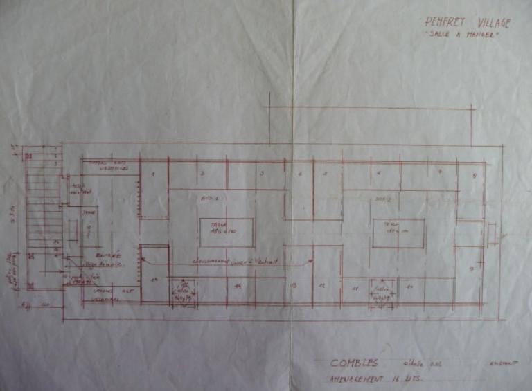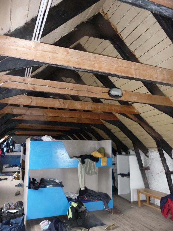 Les autres sources de lumière du dortoir proviennent de cinq fenêtres aménagées dans la pente nord de la toiture (trois petites lucarnes et deux grandes). Le sol est recouvert d’un plancher. La charpente d’origine, apparente, a été renforcée.