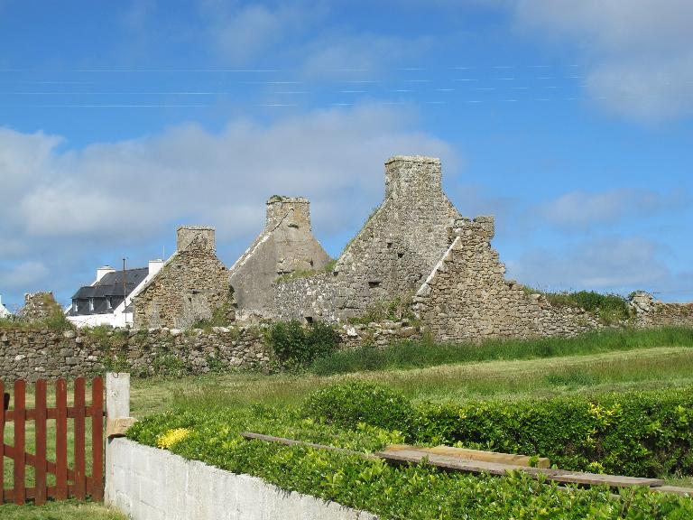 Les ruines : Un alignement de deux maisons avec appentis est ruiné. La maison à l'ouest est une construction antérieure à celle au centre de l'alignement, présente sur le cadastre de 1842. Les souches de cheminée de cette dernière permettent une datation fin 18e, début 19e siècle. Des trous en pignon est recevaient la charpente de l'appentis dont les vestiges d'un pignon subsistent. Maison composée d'un rez-de-chaussée avec porte centrale, fenêtres de part et d'autre, porte en façade postérieure. Première maison : deux fenêtres de dimensions modestes pour l'étage de combles. Une ouverture en pignon ouest, à l'étage.