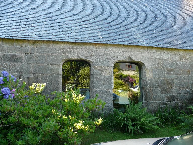 Sa façade nord, qui donne sur la cour, est maçonnée en pierre de taille et présente deux baies toutes deux couvertes d'un arc en anse de panier décoré d'une accolade. Ces deux ouvertures ont été transformées en fenêtres. Cette façade est de plus éclairée par oculus sur son extrémité est. Cette baie est munie d'un vitrail qui a été commandé par le propriétaire actuel auprès d'un maître verrier local. A l'extrémité est de la façade nord se trouve le pavillon d'entrée, en retour d'équerre, construit par le propriétaire avec des pierres provenant de Kerfeunteun et du Morbihan. La porte d'entrée est couverte d'un arc en anse de panier décoré d'une double accolade. Au nord se trouve une fenêtre à demi croisée, cet élément provient également du Morbihan. L'entrée est couverte d'une toiture à pavillon. L'adjonction du propriétaire s'étend sur un deuxième volume au niveau du pignon est. Ce dernier reçoit une souche de cheminée à côté de laquelle une baie est percée. Auparavant bouchée, elle a été rouverte par le propriétaire.