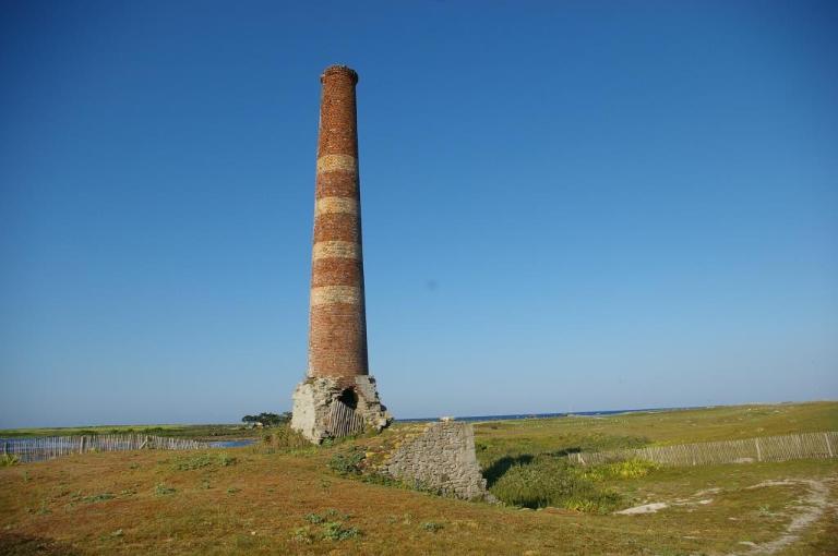 Fours à brûlage de varech comprenant ; deux fours, une cheminée et un bâtiment dit de stockage et étuve. La cheminée est en brique rouge d'une hauteur comprise entre 17 et 20 mètres portant 4 bandes blanches (briques blanches). Le soubassement est en granite. Les deux fours sont construits en brique avec portes anciennement en fonte. Un escalier sépare les fours du bâtiment de stockage. Le bâtiment est construit en granite. La longueur du bâtiment est d'environ 20 mètres. Des tuiles ondulées sont fixées près du soubassement. L'encorbellement de la cheminée est en brique. La cheminée est légèrement conique et a une fissure tout au long du côté est. Le soubassement de la cheminée a une trou de part et d'autre laissant présumé une fragilité de l'édifice.