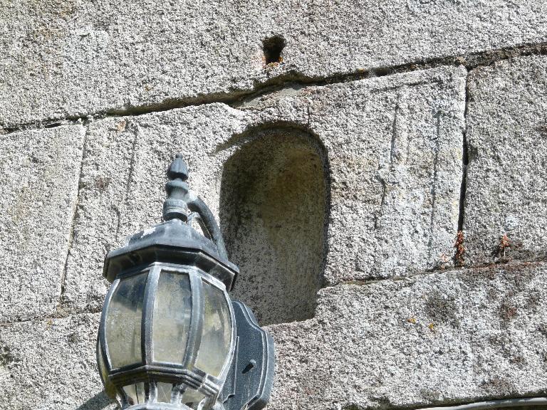 La façade du logis, orientée au sud, est rythmée par trois portes, celle de l'extrémité est, qui est chanfreinée, était à l'origine une fenêtre, tout comme celle de l'extrémité ouest, comme en témoignent des gonds et des négatifs de barreau sur les pierres d'encadrement. Au dessus de ces baies, au niveau de la toiture, sont alignées trois lucarnes cintrées. Au dessus de la porte centrale se trouve une niche votive flanquée de deux sculptures représentant des pots à feu ou des bougeoirs. Le premier étage est rythmé de cinq fenêtres chanfreinées. La fenêtre centrale est surmontée d'un linteau sur lequel on trouve une inscription et une date, difficilement déchiffrable. Le rez-de-chaussée et le premier étage sont séparés par un bandeau allant d'un bout à l'autre de la façade. Le logis comporte deux souches de cheminée réparties sur les deux pignons.