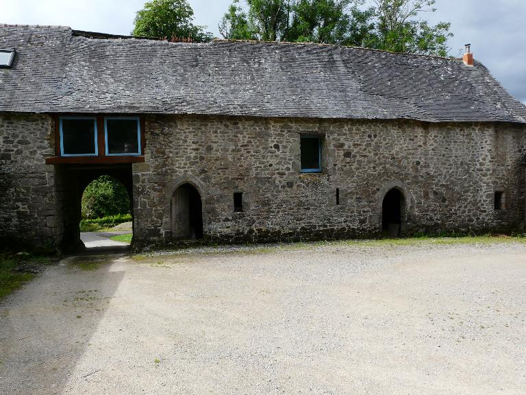 A l'est du logis, joignant le mur de clôture et l'escalier se dresse un bâtiment qui comporte en façade une grande et large porte sans ornement, alignée à l'étage avec une fenêtre, également large. A l'ouest du logis, le bâtiment comporte deux fenêtres alignées, l'une au rez-de-chaussée et l'autre à l'étage.