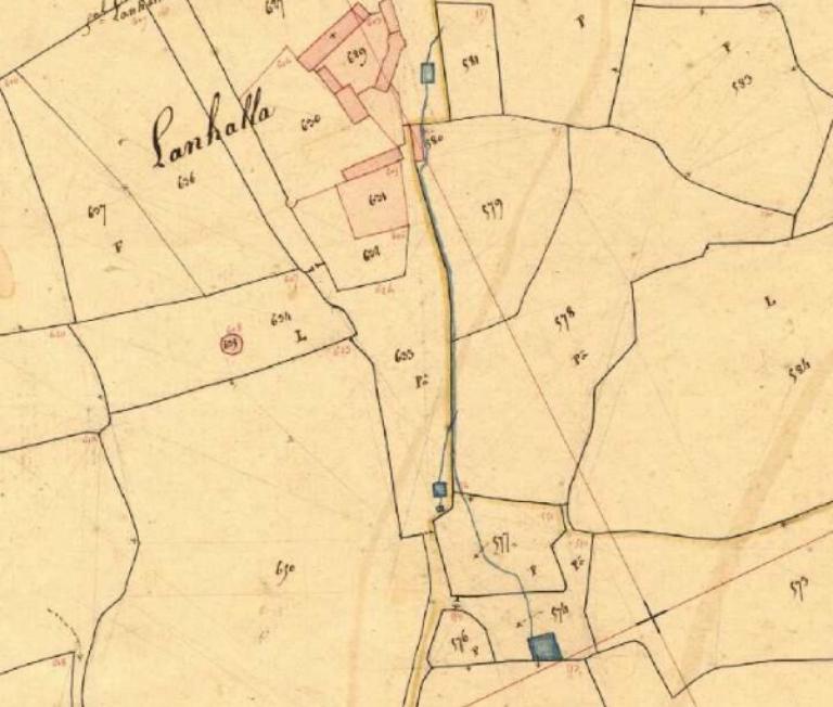 Le bassin à rouir de Lanhalla est situé à proximité du Manoir de Lanhalla construit au cours du XVIe siècle. Cette propriété, qui appartenait à la famille Du Chastel, comprend également un pigeonnier.