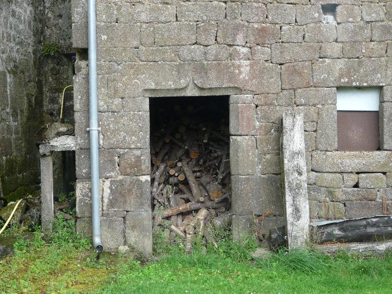 Toujours à l'arrière et à l'est du logis ce qui semble être l'ancienne chapelle seigneuriale a été transformée en hangar. Son pignon est maçonné en pierre de taille et moellons. La reprise de maçonnerie nécessaire à l'agrandissement de l'édifice est lisible sur celui-ci. Ce pignon est percé par une large ouverture couverte d'un arc en plein cintre. On peut lire sur sa clé de voûte la date portée "1925".