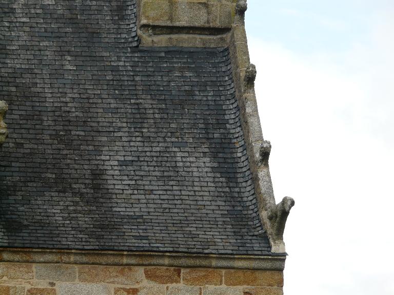 Les deux pignons supportent chacun une souche de cheminée. Découverts, leurs chevronnières sont décorées de crossettes sculptées. A l'égout du toit, elles sont terminées par des figures animales, loup ou lion.