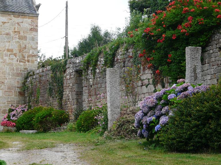 Accolé au mur est du logis se dresse un mur de clôture en moellons.