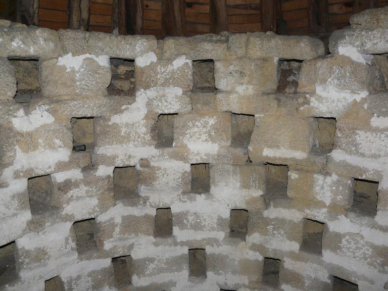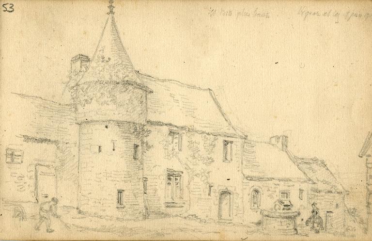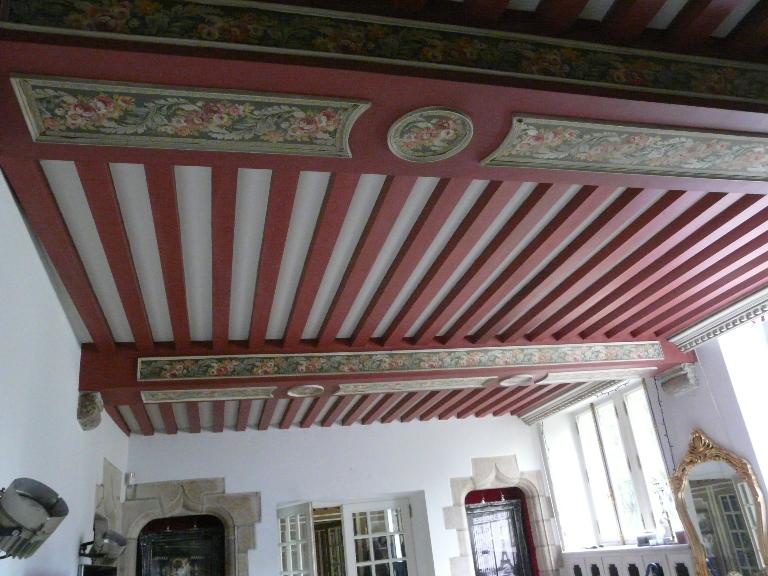 La cage de l'escalier en vis, situé dans l'angle nord-est du logis, comporte des niches comprises dans la maçonnerie. En bas de l'escalier, au rez-de-chaussée, une figure anthropomorphe est sculptée dans l'angle nord-est. L'intérieur du logis présente une salle munie d'une cheminée.