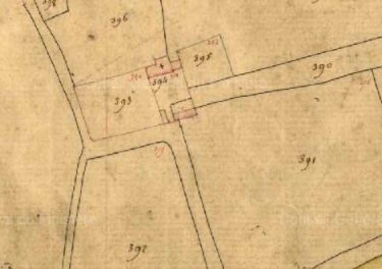 L'arrière du bâtiment, également crépis, comprend une adjonction du XXe siècle.