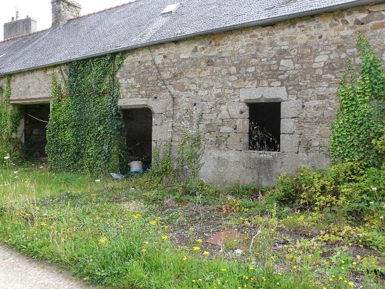 En retour d'équerre, à l'est, un édifice maçonné en pierres de taille s'élève sur un rez-de-chaussée, un étage et un niveau de comble. Les baies sont similaires aux précédentes. On remarque la présence sur la façade est de deux lucarnes à fronton triangulaire, qui encadrement une souche de cheminée. Cet édifice est couvert par une toiture à pavillon. Il se prolonge vers le nord par une longère maçonnée en moellons, s'élevant sur un seul niveau et couverte par un toit en bâtière en ardoise.
