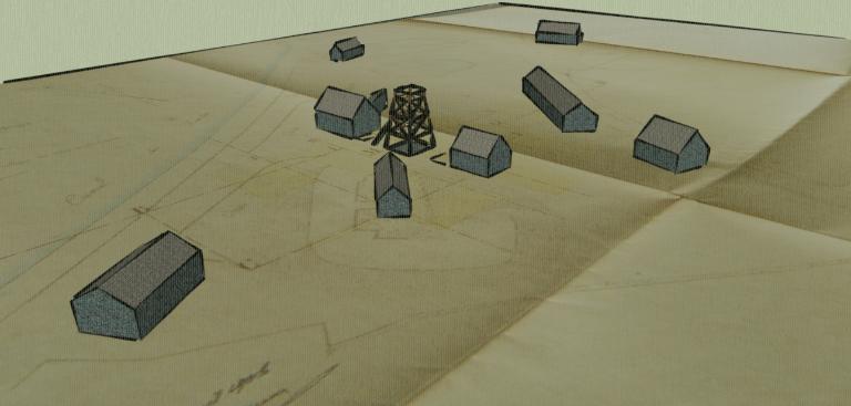 En 1912, l’ardoisière compte 21 mineurs qui travaillent dans huit chambres. Ils sont éclairés à l’électricité. Un treuil alimenté par une machine à vapeur permet de remonter les blocs. En surface, quatre ateliers abritent 47 fendeurs et une forge se trouve près du puits. Le bureau du contremaitre se trouve près du canal. Deux bâtiments se trouvent près du chemin vicinal sans fonction connue : peut-être des lieux de stockage pour les ardoises ou des magasins d’explosifs. Des quais sont aménagés sur la carrière elle-même.