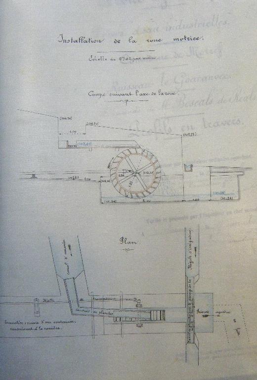 En 1895, l’exploitant de l’ardoisière de Lannezval est Yves Perrien, sur une parcelle appartenant à M. Boscals de Reals. M. Perrien réalise une prise d’eau sur le ruisseau Goaranvec pour faire fonctionner une roue hydraulique pour la pompe à épuisement de sa carrière. La prise d’eau est faite sur la parcelle n°713 de la section B, appartenant aussi à M. Boscals de Reals, de même que les terrains où passe la rigole. Cette rigole mesure 470 mètres de long environ. Après avoir actionné la roue, les eaux s’échappent par un aqueduc de 67 mètres de long puis à ciel ouvert jusqu’au ruisseau sur 45 mètres de long. La roue hydraulique a un diamètre de 1,85 mètre et elle reçoit l’eau par-dessus.