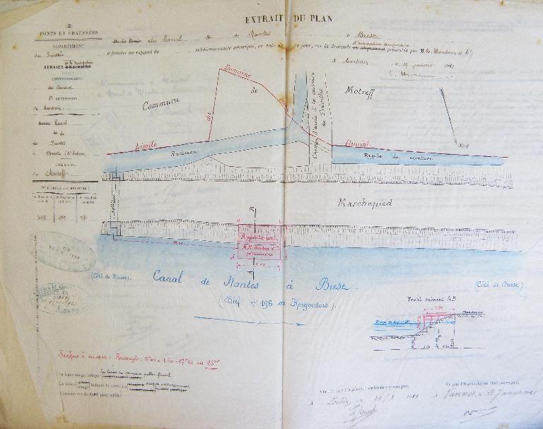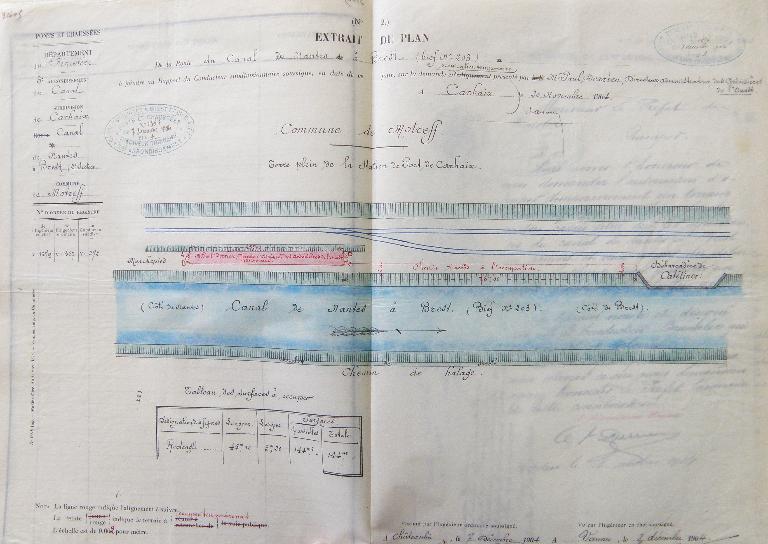 En 1903, MM. Henry et Cie sont autorisés à occuper temporairement une partie du marchepied du canal (bief 196) pour leur permettre d’embarquer des ardoises provenant de la carrière de Tréveller.