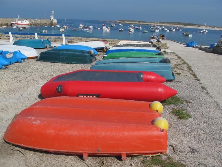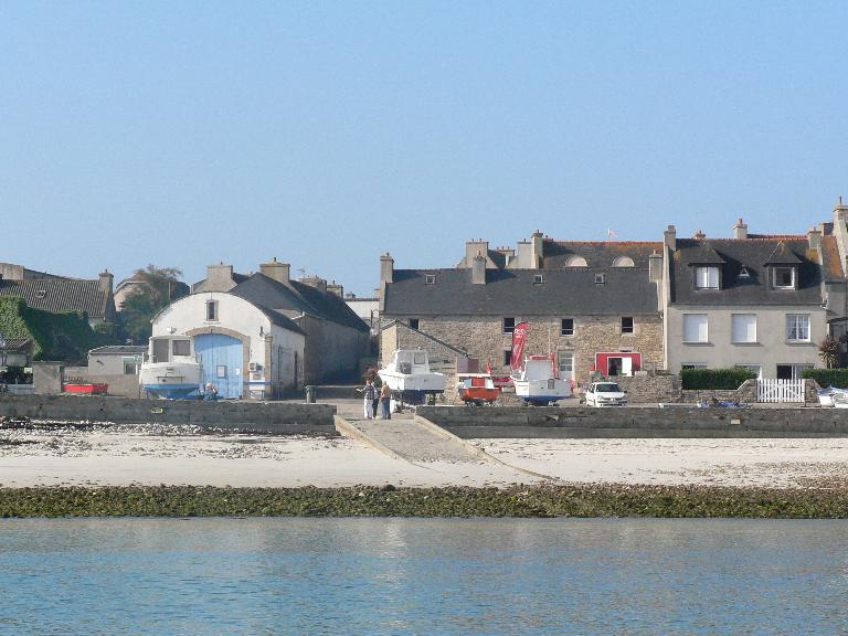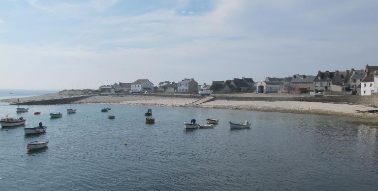Le port : Le môle date de 1864. L'infrastructure portuaire est complétée au cours du 20e par des cales pour les stations de sauvetage et un embarcadère situé au nord de l'île. (cf. dossier port, île-Molène). En parallèle c'est le bâti à proximité du môle qui se construit.