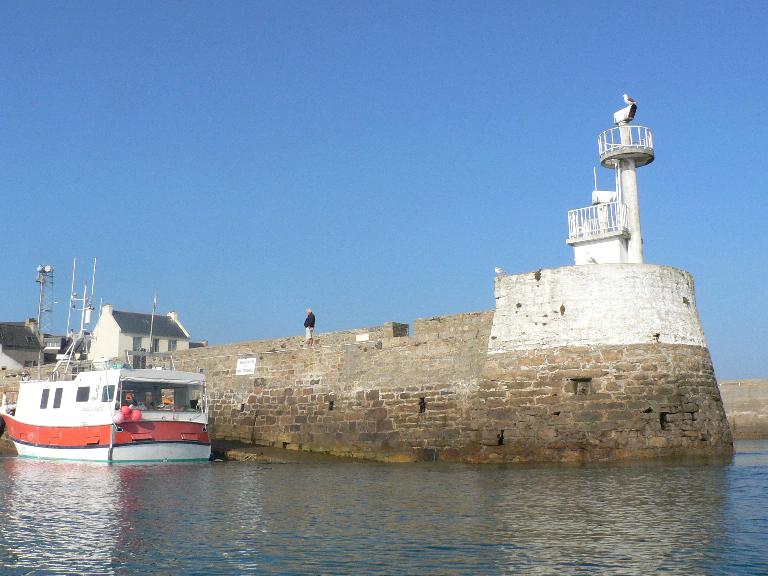 Situé à l'est de l'île, le port de Molène est abrité par l'île de Ledenez vraz. La première demande "de chaussée ou quai pour empêcher que la mer [ne] pénètre sur l'île et empêche les ravages" remonte au 3/04/1789, date de rédaction des cahiers de Doléances de Molène. L'accord de réaliser les travaux de construction d'une digue (75 mètres) permettant de mettre à l'abri des courants les bateaux au mouillage est donné en 1861 par délibération du Conseil Général du Finistère. Les travaux concernant la digue et la cale sont terminés en 1865.