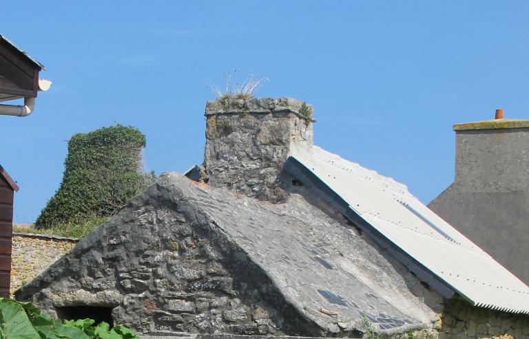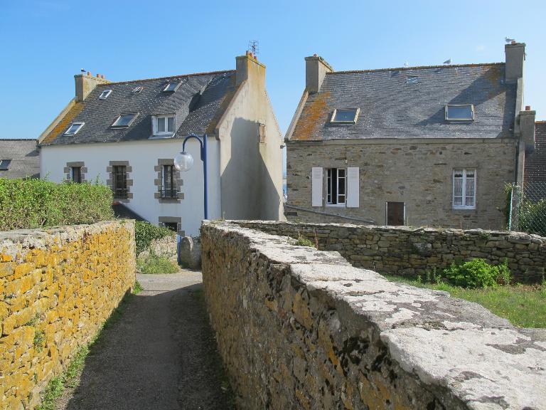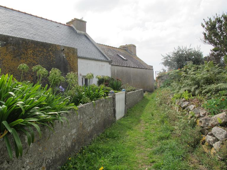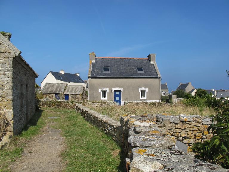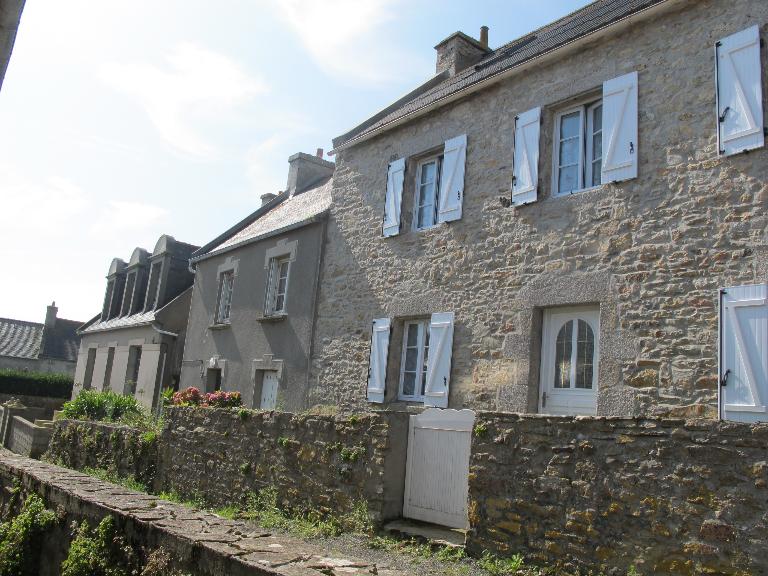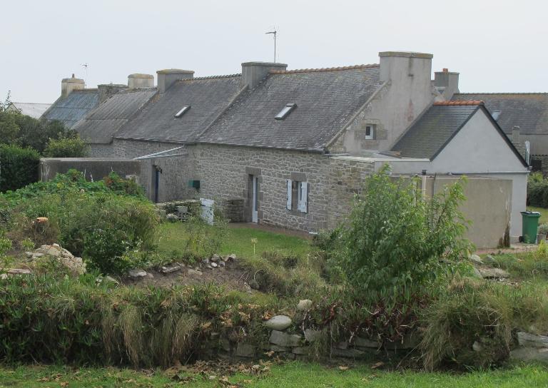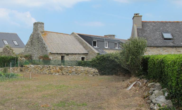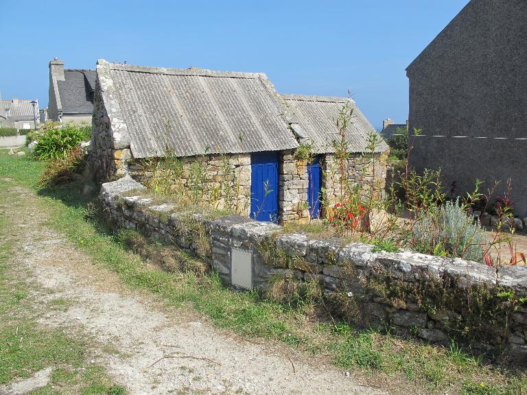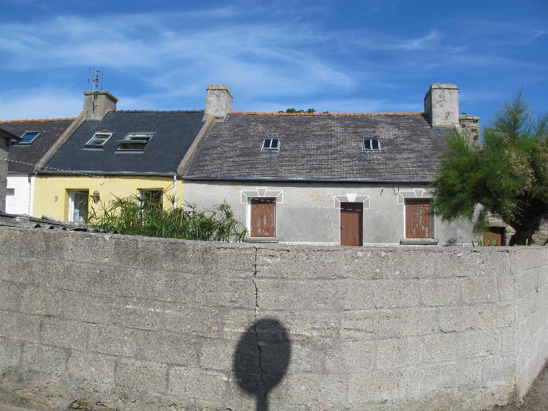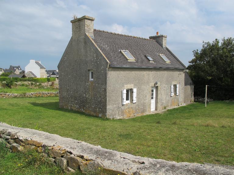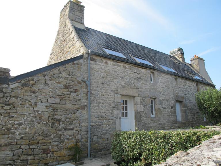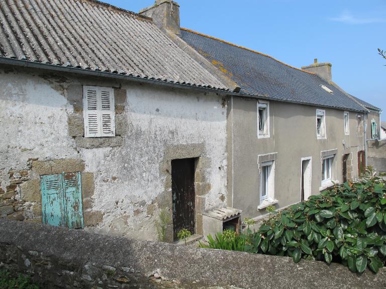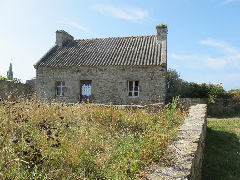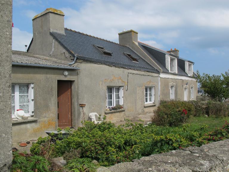 Typologie 1, de type élémentaire : habitation à pièce unique, à une cheminée au premier niveau ; second niveau-étage de comble-dédié au stockage des récoltes. Façade orientée sud, composée d'une fenêtre de petite dimension et d'une porte. Pente de toit très forte (pour les quelques rares exemples non modifiés), rampants constitué de blocs de granite, les chevronnières ; souche de cheminée assez large et parfois très haute (source orale) ; hauteur du mur pignon assez importante et fenêtre de petite dimension en pignon. Le chaînage d'angle est constitué de gros blocs de granite (mise en oeuvre en harpe). La maçonnerie est constituée de moellons de granite et grès de dimensions diverses. On trouve parfois des galets, issus des grèves, intégrés à la maçonnerie. L'emprise au sol est de faible importance. D'après les observations, ce type de bâti était organisé en alignement. Cela permet une meilleure protection au vent et surtout d'épargner les parcelles à usage agricole.
