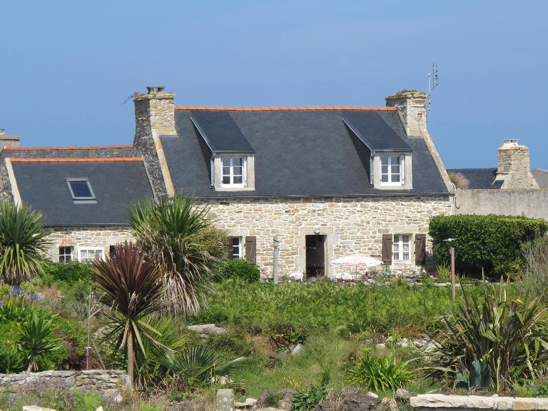 Les matériaux sont issus de la carrière située à l'ouest de l'île pour les maisons les plus anciennes. Si le bâti était anciennement couvert de gled (mélange d'argile et de paille) dorénavant l'ardoise et le fibro-ciment prédominent.