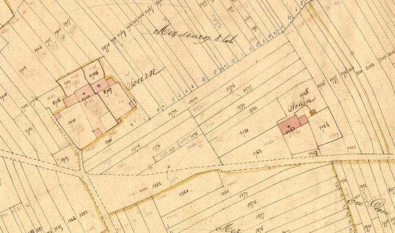 Le Sourn : bâti ancien antérieur à 1842, date de relevé du cadastre ancien. Les volumes, les souches de cheminées, ainsi que l'ordonnance des façades permettent une datation du début 19e. Si un des alignements est enduit ciment, le second est en pierres apparentes. Le bâti est implanté au nord de la parcelle de l'aire à battre.