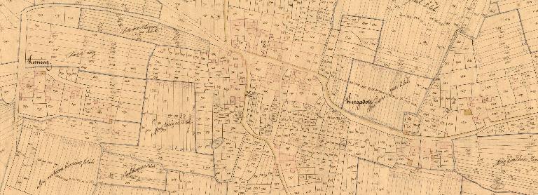 Ecart de Kergadou : Le bâti est assez dense dans la partie ouest de l'écart et se développe le long de la route dans la partie est vers Keranchas. Plusieurs campagnes de construction entre le début du 19e jusqu'au milieu du 20e. Certaines maisons portent les dates de 1832 et 1858. Quelques maisons présentent les caractéristiques de l'habitat de la première moitié du 19e siècle : rez-de-chaussée, étage de comble, petites ouvertures en façade sud et murets fermant la parcelle principale.