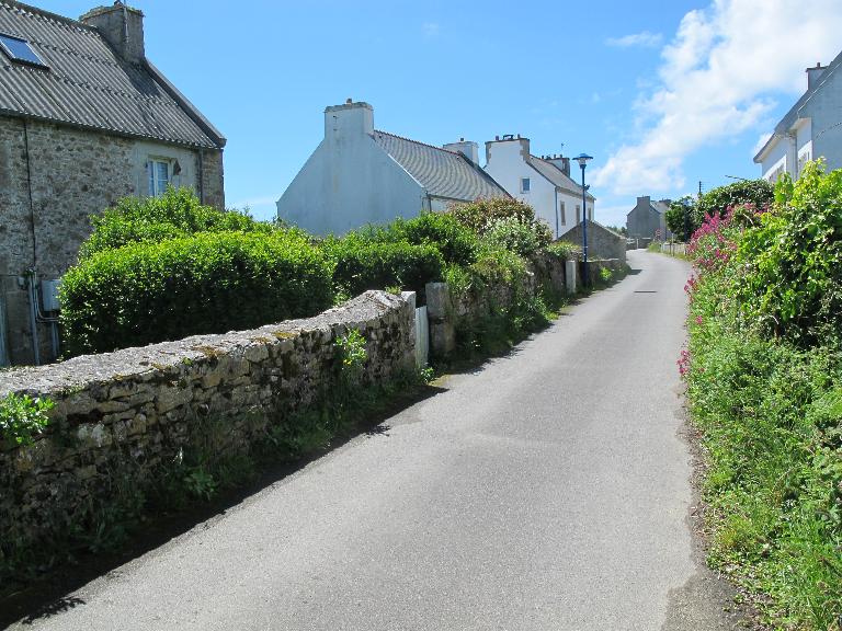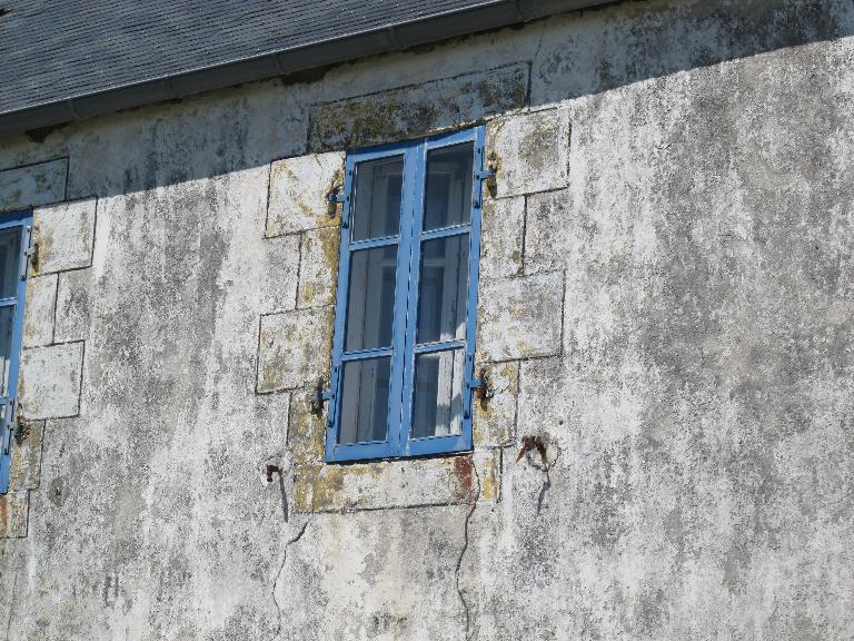 Croas Ruz : alignement 1ère moitié 19e modifié ; vestige de volets vitrés ; enduit ciment ; maison de type ternaire (limite 19e 20e)