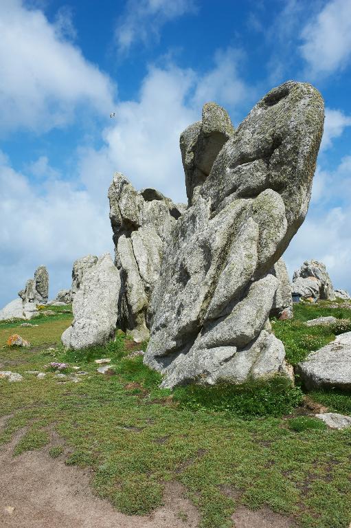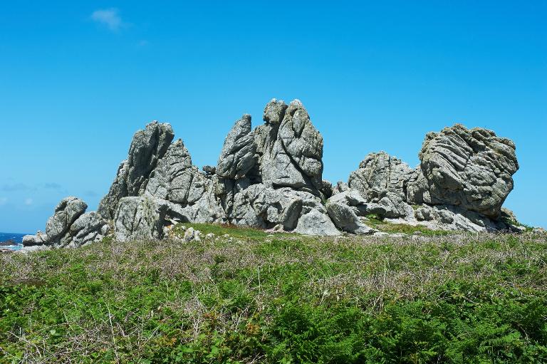Landes et friches, vallons, terres de pâtures, anciennes carrières, murets, retenues d'eau : le paysage de Ouessant porte la trace de l'activité humaine, des économies passées et des aménagements actuels. La nécessité de signaler les dangers en mer, à l'approche de l'île, a constitué des éléments marqueurs du paysage.