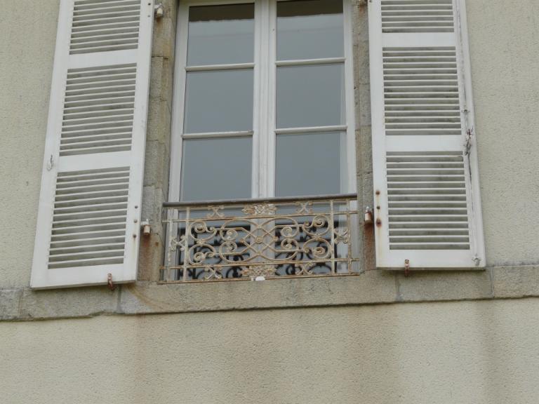 Sur la façade sud qui est la première à être vue, trois différents couvrements habillent les baies et animent la façade. Linteaux en arc surbaissé avec clé passante et pendante pour le rez-de-chaussée, linteaux monolithes droits au premier étage et lucarnes jacobines en pierres de taille de granit au niveau des combles. La façade nord est quant à elle assez sobre, elle ne comporte pas de lucarne et les baies du rez-de-chaussée ainsi que celles du premier étage sont couvertes d’un linteau monolithe droit. Par ailleurs, au niveau du mur pignon ouest, est percée une étroite baie ogivale dans laquelle est fixé un vitrail avec une gamme de couleur allant du jaune, bleu ou rouge.