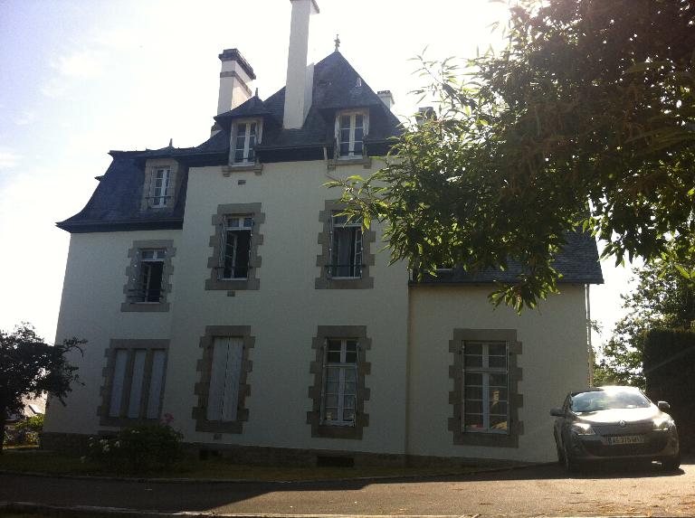 La demeure est constituée de deux corps de bâtiments encastrés l’un dans l’autre. Un corps de bâtiment central de plan rectangulaire. Il se caractérise par la présence de lucarnes en pierre de taille de granit et une toiture à la Mansart. Au nord-est, se greffe l’autre corps de bâtiment présentant également un plan rectangulaire. Il se différencie par la présence de lucarnes gerbières dont l’appui saillant repose sur des corbelets et sa façade est, en avancée introduit un jeu de volumes.