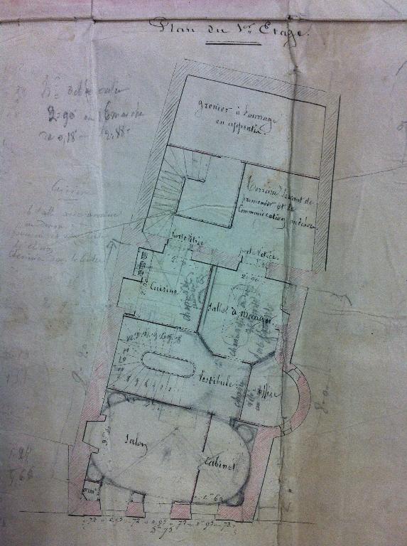 Les plans de la maison sur le quai de l’Odet pour Monsieur Frochen, à Quimper ont été dressés en 1842 par l’architecte Joseph Bigot. Monsieur Frochen était banquier, commissaire et négociant à Quimper.