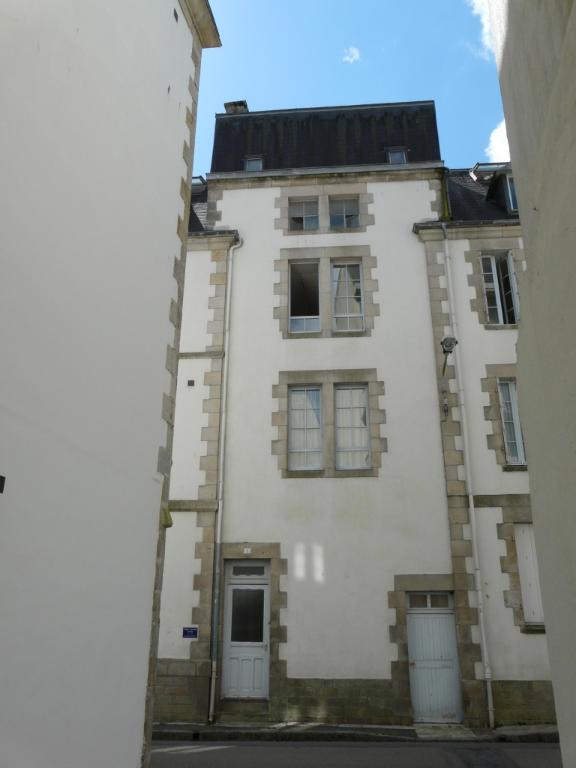 Cette maison alignée sur le quai, occupe une parcelle relativement étroite mais profonde. Elle est située à l’angle du quai de l’Odet et de la venelle de Kergos. La particularité de la maison réside dans l’emploi du pan coupé qui accueille un décor recherché et il est couronné par une grande lucarne.