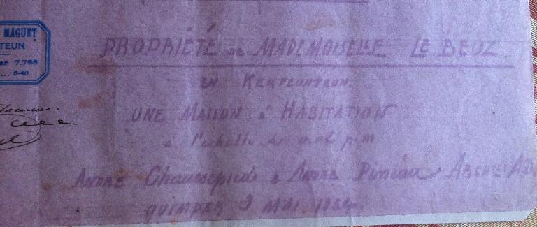 Cette maison a été bâtie pour Mademoiselle Le Beoz à Kerfeunteun dans les années 1930. Les plans ont été réalisés en 1934 par les associés, André Chaussepied et André Pineau. André Chaussepied est le fils de Charles Chaussepied, il était très proche du mouvement régionaliste breton et des Seiz Breur.