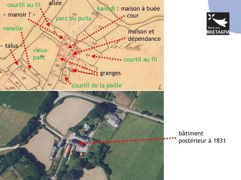 En 1618, dans un aveu des terres de la famille de Maillé qui possèdent les terres nobles de Lesquélen, il est fait mention d’une maison nommée la "Cave de Lesquellen" avec "jardin entouré de murailles" située dans la basse-cour. Dans cette demeure - de nos jours réduite à l’état de vestiges - sont vendus pour le compte du seigneur, des vins exemptés des impôts et billots (imposition sur les boissons, pour le duc puis pour le roi). Cette maison pourrait être une hôtellerie, établissement fournissant le gîte et le couvert moyennant paiement. L’hôtellerie pourrait être associée au pardon de Saint-Ténénan.