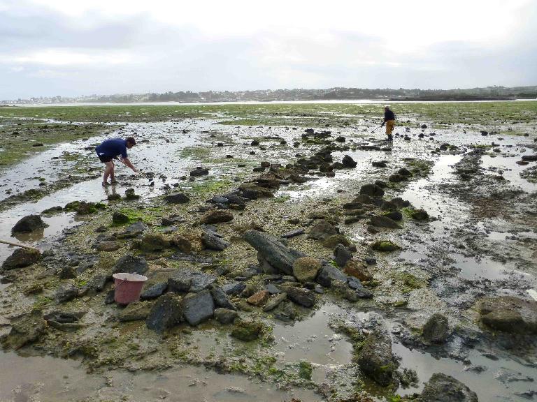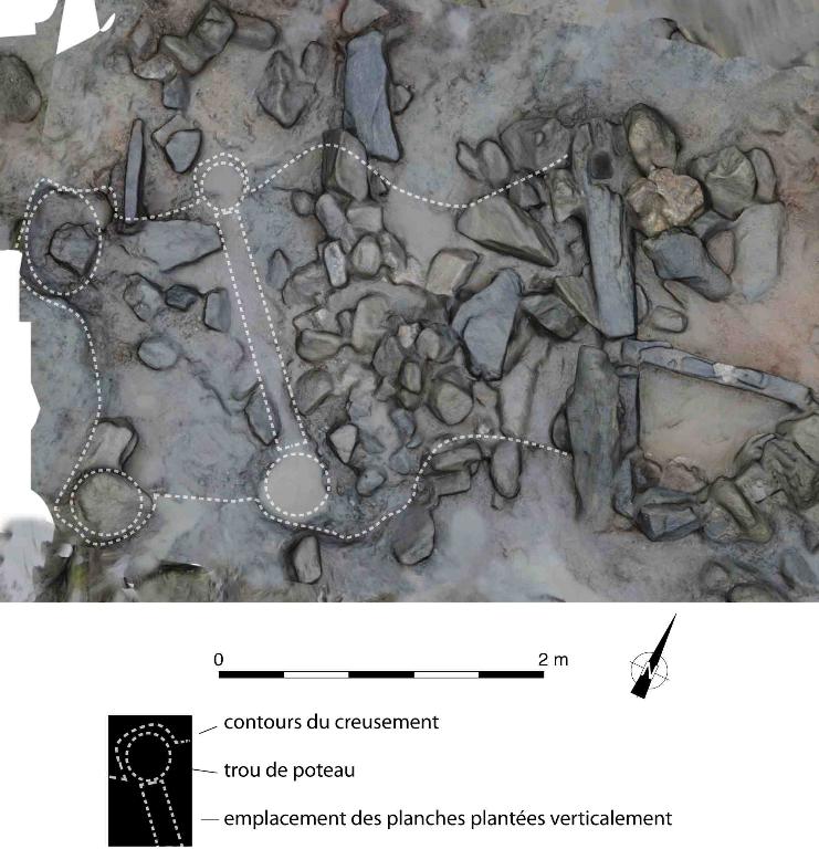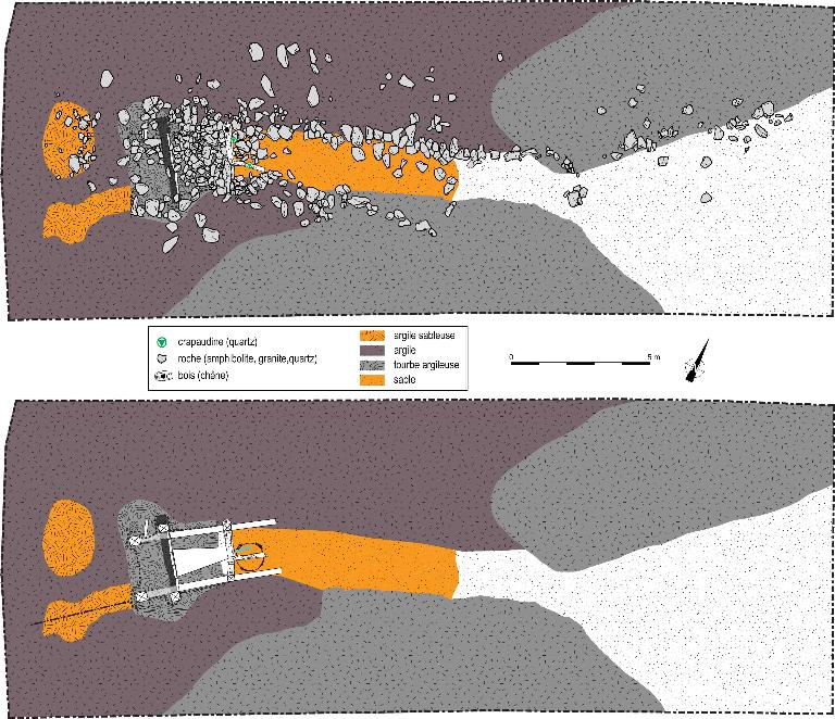 C'est une première intervention archéologique en 2003 qui donne l'occasion de relever sur l’estran la présence d'une structure rectangulaire de 10 x 4 m, délimitée par de grosses pierres et fermée en partie haute par des planches de chêne plantées verticalement. Un rapide sondage dégage, entre autres, un madrier avec un bloc de quartz enchâssé dans une mortaise centrale, maintenu par une planchette chevillée. Un parallèle est d'abord établi entre ce morceau de quartz et les offrandes similaires rencontrées dans des fontaines votives au Pays de Galles et en Irlande au Moyen-Age. Par ailleurs cet emplacement est appelé « Feunteun Vor », soit Fontaine de mer, cette fouille se conclut donc avec l'idée qu'il s'agit de la vocation de cette structure.