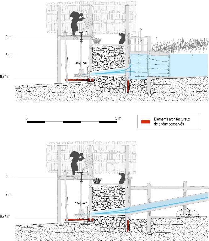 D'autres éléments viennent ensuite confirmer la fonction de moulin de cette structure, identifiée comme un moulin à eau à roue horizontale. C'est l'analyse de la montée du niveau de l'eau qui permettra de confirmer son rôle de moulin à marée. En effet, aujourd'hui, la base du moulin est recouverte de 2 m d'eau à la pleine mer. Or des études ont montré que le niveau de l'eau avait seulement augmenté de 50 à 70 cm sur 1 500 ans. La base du moulin aurait donc été régulièrement recouverte entre 1,10 à 1,30 m et cette configuration, très préjudiciable aux mécanismes, n'aurait eu aucun intérêt si le moulin ne fonctionnait qu'avec les ruisseaux en amont et non pas grâce aux marées.