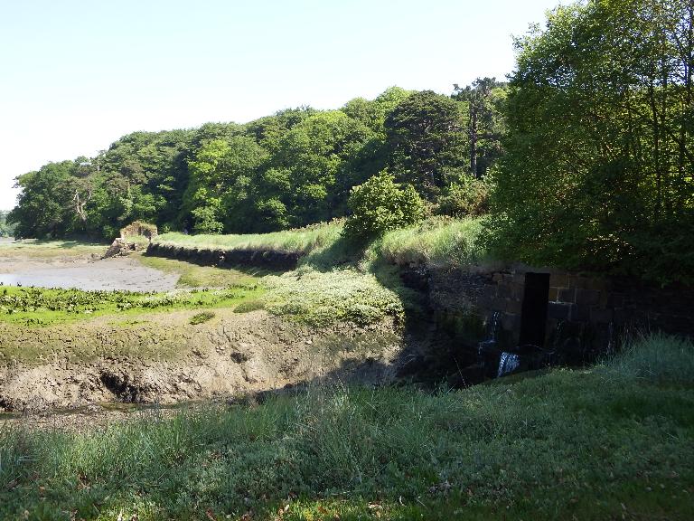 Il ne reste aujourd'hui plus grand chose du bâtiment de plan rectangulaire. Un éperon destiné à prévenir l'enfoncement dans la vase est encore visible, mais un ancien cliché non daté nous indique qu'il en existait trois à l'origine : deux sur la façade aval et un en façade sud, ce qui renforçait considérablement l'angle sud-ouest du bâtiment ou devait justement s'écouler l'eau après être passée dans la roue.