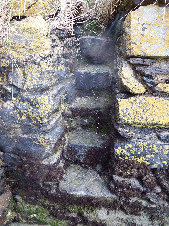 Enfin, dernier élément remarquable encore présent : un escalier de pierre très étroit accolé à la façade sud du moulin.
