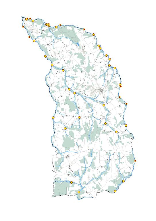 Le réseau hydrographique dense sur la commune de Plougonven a facilité l’implantation de nombreux moulins à eau, notamment sur les rivières de Tromorgant et du Jarlot, en limites communales avec Plouigneau, Lannéanou, le Cloître et Plourin. La carte de répartition des différents anciens moulins nous montrent également une implantation sur les affluents du Jarlot, qui parcourent la commune du nord-ouest au sud-est, correspondant à d’anciens moulins seigneuriaux (moulins des manoirs de Gaspern, Mézedern, Kerloaguen, du Cosquer, de la Tour).