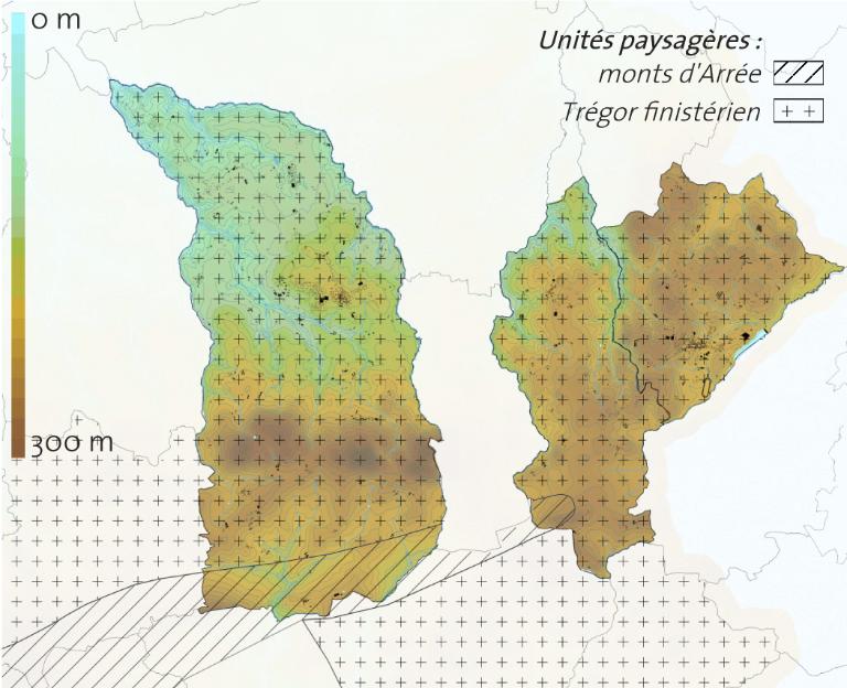 Entre l’établissement du cadastre napoléonien de 1838 et le milieu du 20e siècle, les structures de l’espace rural ont peu évolué. Toutefois, du milieu du 19e siècle aux années 1920, l’habitat rural connait un fort renouvellement marqué par de nombreuses constructions neuves, reconversions, démolitions. La ville de Guerlesquin, dont la population oscille tout au long du 19e siècle entre 700 et 800 habitants, soit près de la moitié de la population communale, évolue très peu.