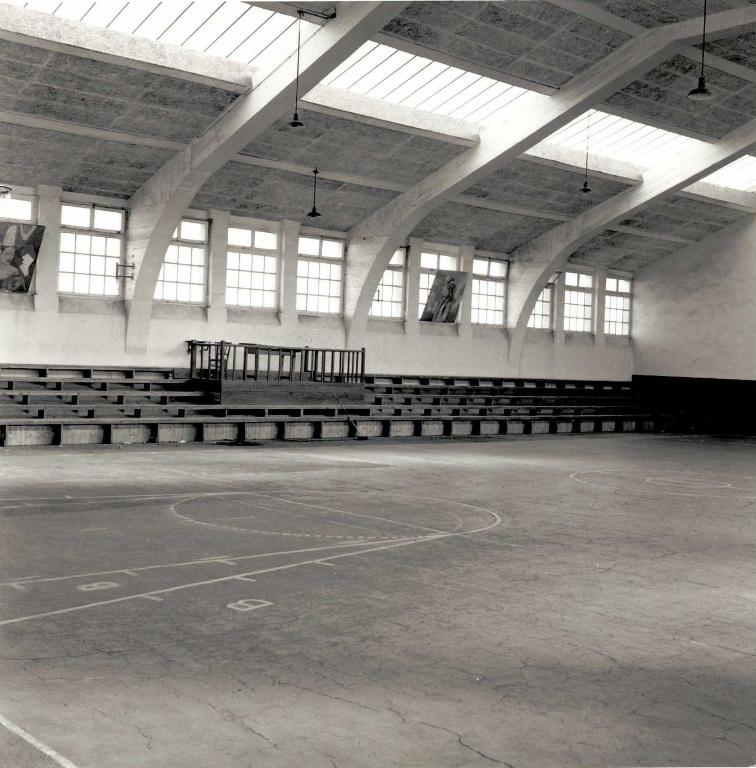 Le bâtiment abrite au rez-de-chaussée hall d'entrée, sanitaires, salle de spectacle, scène et avant-scène ; à l'entresol, cabine de projection et douches ; à l'étage, salle omnisports de 31 m x 16 m, bureau du directeur, vestiaire ; dans les combles, bibliothèque et salle de lecture.