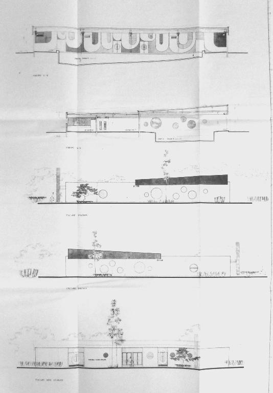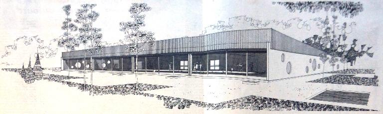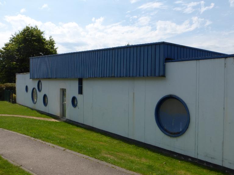 Piscine industrialisée de type « Plein Soleil » comprenant un bassin de 25 m x 10 m avec vestiaires-sanitaires infirmerie, chaufferie desservis par un hall d’entrée et des dégagements. La construction se compose d’une ossature métallique du type portique en profils pleins sur trois appuis articulés. La couverture roulant sur les portiques se compose de cinq sommiers et de six cours de pannes munis de potelets à hauteur variable. Contreventement assuré par une poutre en I sur la façade côté solarium et par des palées cadres.