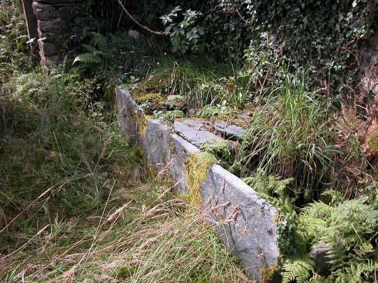 Le douet de 3m x 1,20m, constitué de dalles de schiste, comprend un repamoir. Une cuve a buée brisée est retrouvée à l'extérieur du bâtiment. Une source aménagée est située à proximité. Le parcours du canal menant l'eau de la source au bâti a été partiellement modifié. Celui-ci débouche sur la façade près de la porte et sort en son pignon.