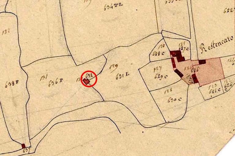 Le kanndi de Restancaroff est situé au milieu d'une prairie à l'ouest du village à quelques centaines de mètres des fermes et habitations. Comme le montre le dessin du bâtiment sur le cadastre napoléonien, celui-ci comporte une avancée sur le mur nord-est, on parle de kanndi "à apotéis". Ce décrochement permet d'agrandir l'espace intérieur du kanndi au bout du bassin. Sont conservés le mur du pignon ouest (3,60m), le mur gouttereau* sud-ouest (de 1,40m à 2,20m) avec une porte sans linteau et celui du nord-est (2,10m) avec une avancée.