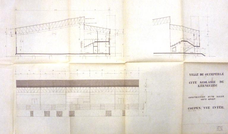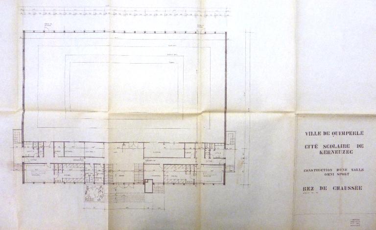 Le 15 octobre 1966, le conseil municipal approuve le dossier d’avant-projet des installations sportives de la nouvelle cité scolaire de Kerneuzec. Le projet conçu par l'architecte Pierre Brunerie bénéficie d'un arrêté d'approbation technique le 10 mars 1967 et d'une subvention de 409 000 F au taux de 40,9% le 24 octobre de la même année. les travaux de gros-oeuvre sont adjugés le 25 juillet 1968 à l'entreprise Le Roch, de Lanester, ceux de charpente-couverture à l'entreprise Le Roux, de Noyal-Muzillac. La réception provisoire est prononcée le 26 octobre 1970. Régulièrement entretenu, le gymnase a fait l'objet d'une rénovation en 2011-2012.