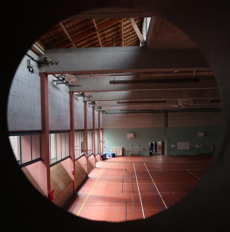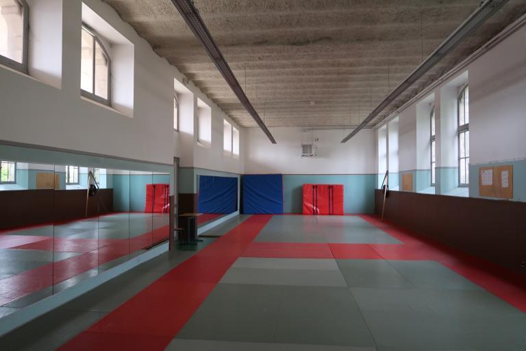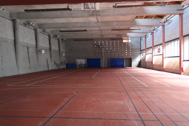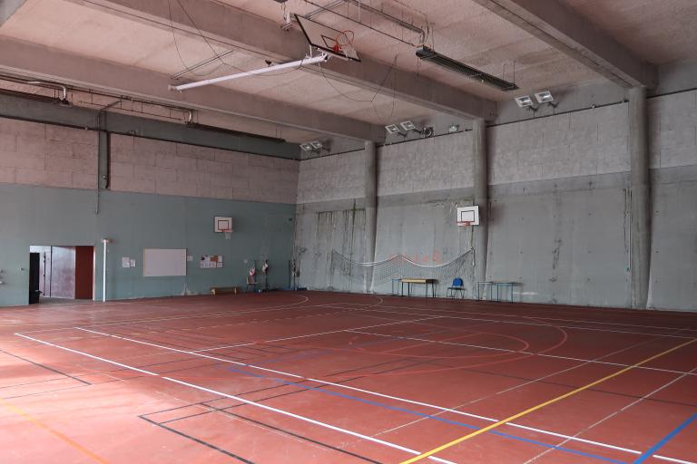 L'aire d'éducation physique couverte de 35 m x 16 m qui lui fut adossée en 1974 comprenait "un revêtement de sol en enrobés denses, une charpente métallique avec couverture en plaques translucides PVC et bardage en panneaux amiante-ciment-polystyrène expansé", dispositif qui a aujourd'hui disparu.