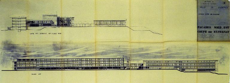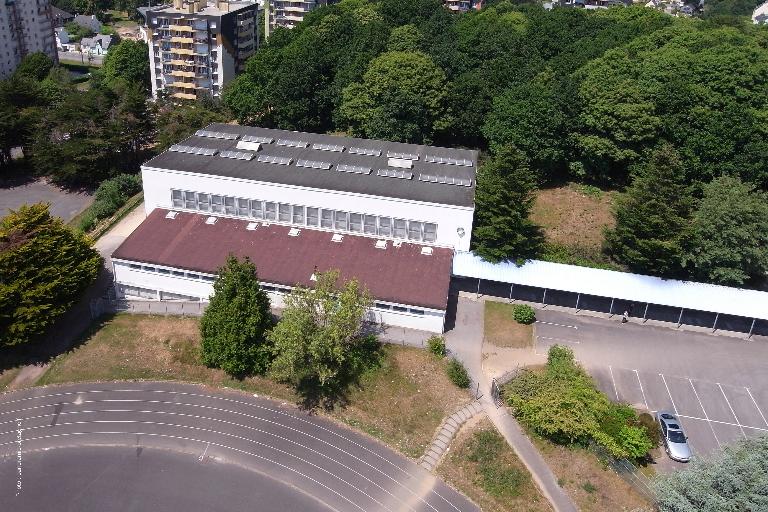 Bon exemple de gymnase de lycée du milieu des années 1960, réalisé par deux architectes qui s'étaient illustrés dans la reconstruction de Lorient.