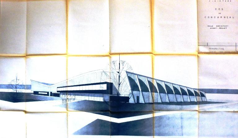 Le 16 septembre 1966, le conseil municipal approuve l'avant-projet de construction d'une salle omnisports au nouveau CES du Porzou, confié au cabinet Le Bail & Penven. Après l'abandon d'un premier projet estimé à 1,4 MF, l'arrêté d'approbation technique est signé le 27 novembre 1967 pour un équipement plus modeste, le permis de construire le 13 mars 1968. Les travaux sont adjugés le 21 septembre. La réception provisoire a lieu le 31 octobre 1969. Le 8 mai 1970, une convention est passée entre la ville et le lycée pour l'utilisation du gymnase.