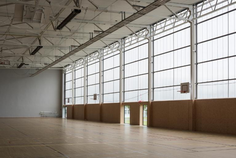 La rénovation de 1998 a consisté à remplacer la façade rideau d'origine par un écran translucide à l'est, à rhabiller les trois autres façades d'un bardage métallique et à créer des locaux annexes (salle des professeurs, hall sportif, rangements).