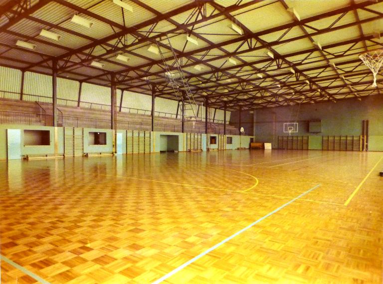Le programme des installations sportives du lycée de Pont-l'Abbé - d'abord simple annexe du lycée de garçons de Quimper - est approuvé le 30 octobre 1961 par le directeur général de l'Equipement scolaire, universitaire et sportif. Il est conçu par Jacques-Henri Riedberger, architecte en chef des Bâtiments civils et Palais nationaux, et par le constructeur La Salle sportive (28 rue Marbeuf, Paris). Le marché est approuvé le 9 août 1962 et le bâtiment livré l'année suivante.